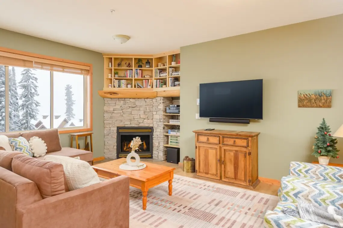 This 1,240 sq. ft. 3 bedroom (1 bedroom is a den), 2-bathroom, chalet comfortably sleeps 8 guests and is ideal for the beginners and experienced snow riders in your group as your ride up the Bullet Chair, gives you access to the entire mountain! As you are only a 5-minute walk to the village, this gives you access to Lara’s Gondola which also gives you access to Happy Valley where you’ll find the skating rink, the tube park, the cross-country ski trails, the snowshoe trails and a couple more eating establishments.